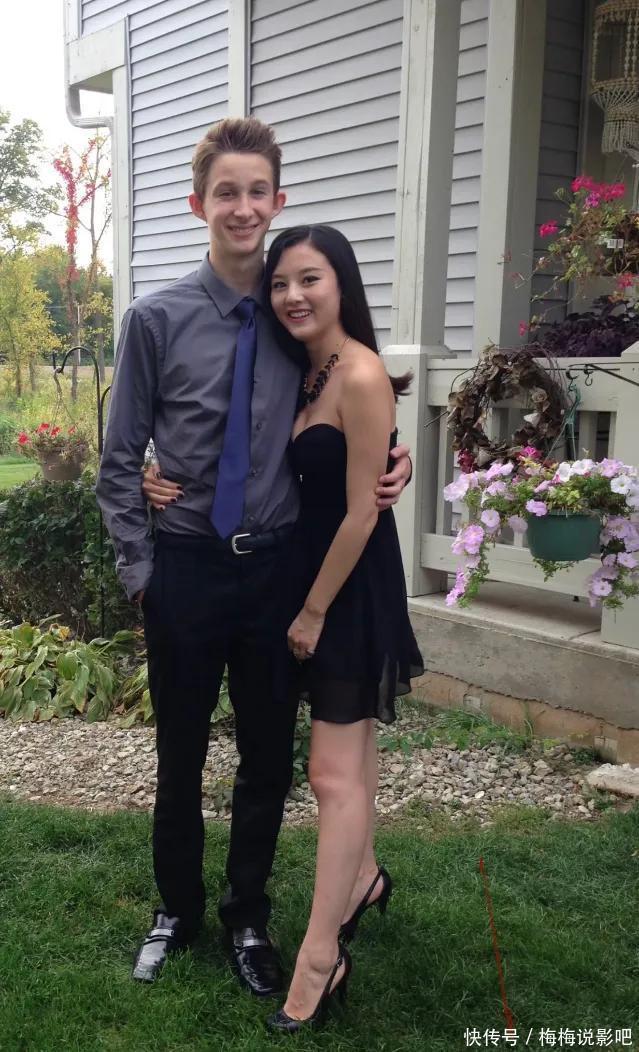 照片貌似是他们在美国家庭和花园里的合影,两个人都非常开心亲密的搂抱在一起合照。让人看了不免会觉得他们是男女朋友的关系。